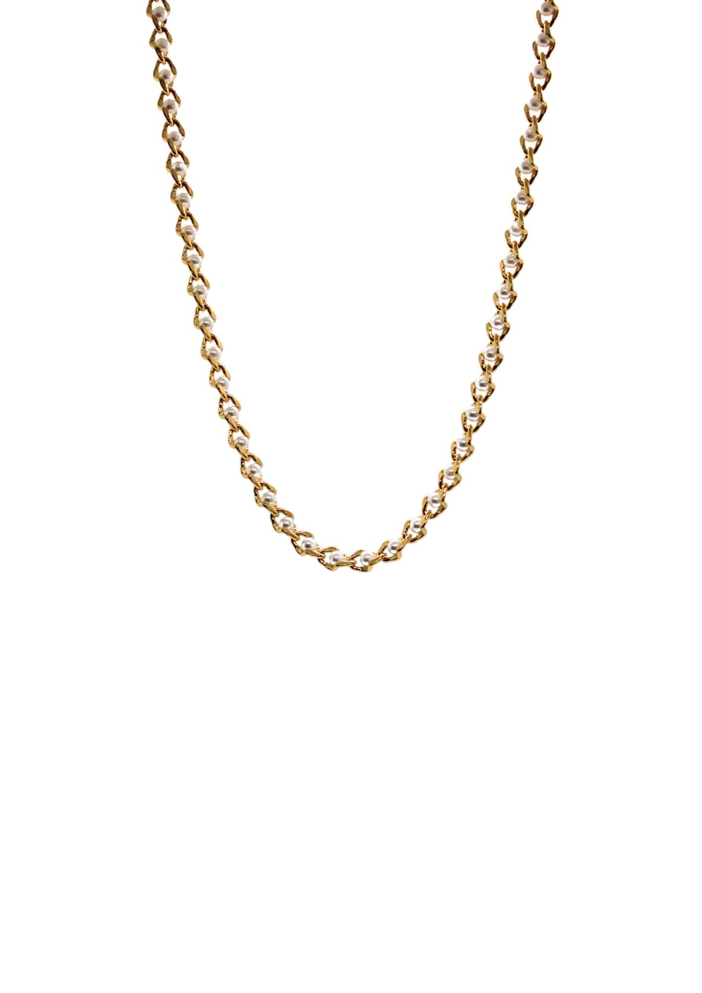 Un accesorio atemporal y elegante que irradia sofisticación. Con perlas lustrosas unidas delicadamente, este collar añade un toque de encanto clásico a cualquier conjunto. Eleva tu estilo sin esfuerzo con esta pieza versátil, perfecta para ocasiones tanto informales como formales.