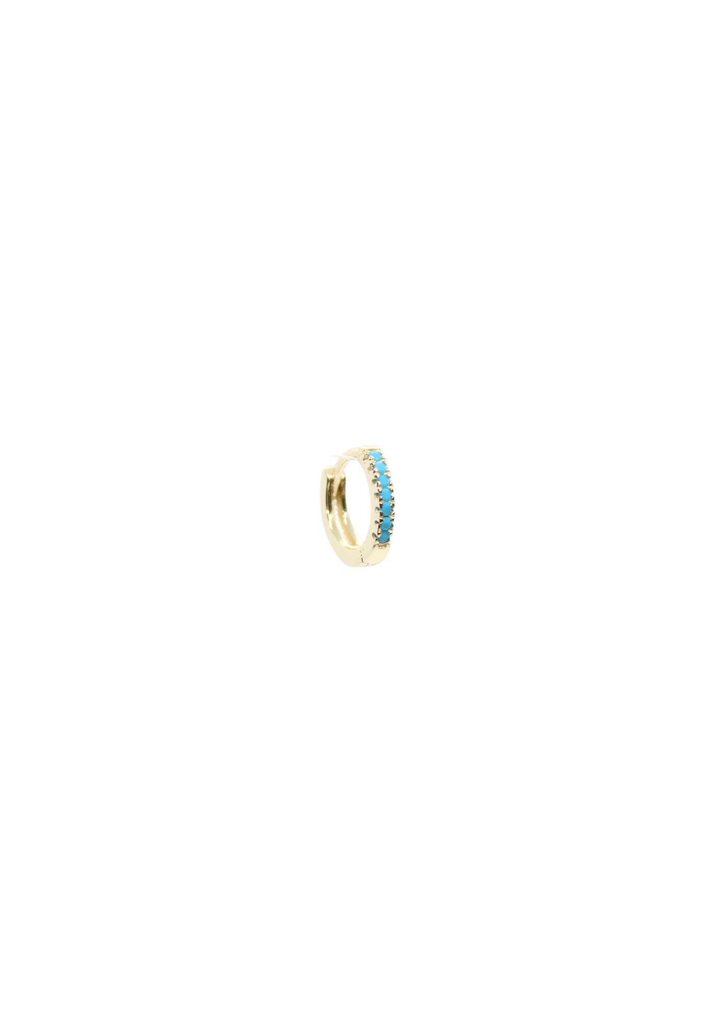 Una fusión de elegancia y color vibrante. Con su diseño delicado y adornado con circonitas cúbicas y turquesas, este piercing es una declaración audaz de estilo y sofisticación. Fabricado con materiales de alta calidad y un acabado meticuloso, añade un toque de brillo y encanto a cualquier look. Lleva contigo la distinción de nuestro Mini Turquoise CZ Huggie y haz una declaración de moda que deslumbre con su encanto único.Plata con baño de oro y zirconia.