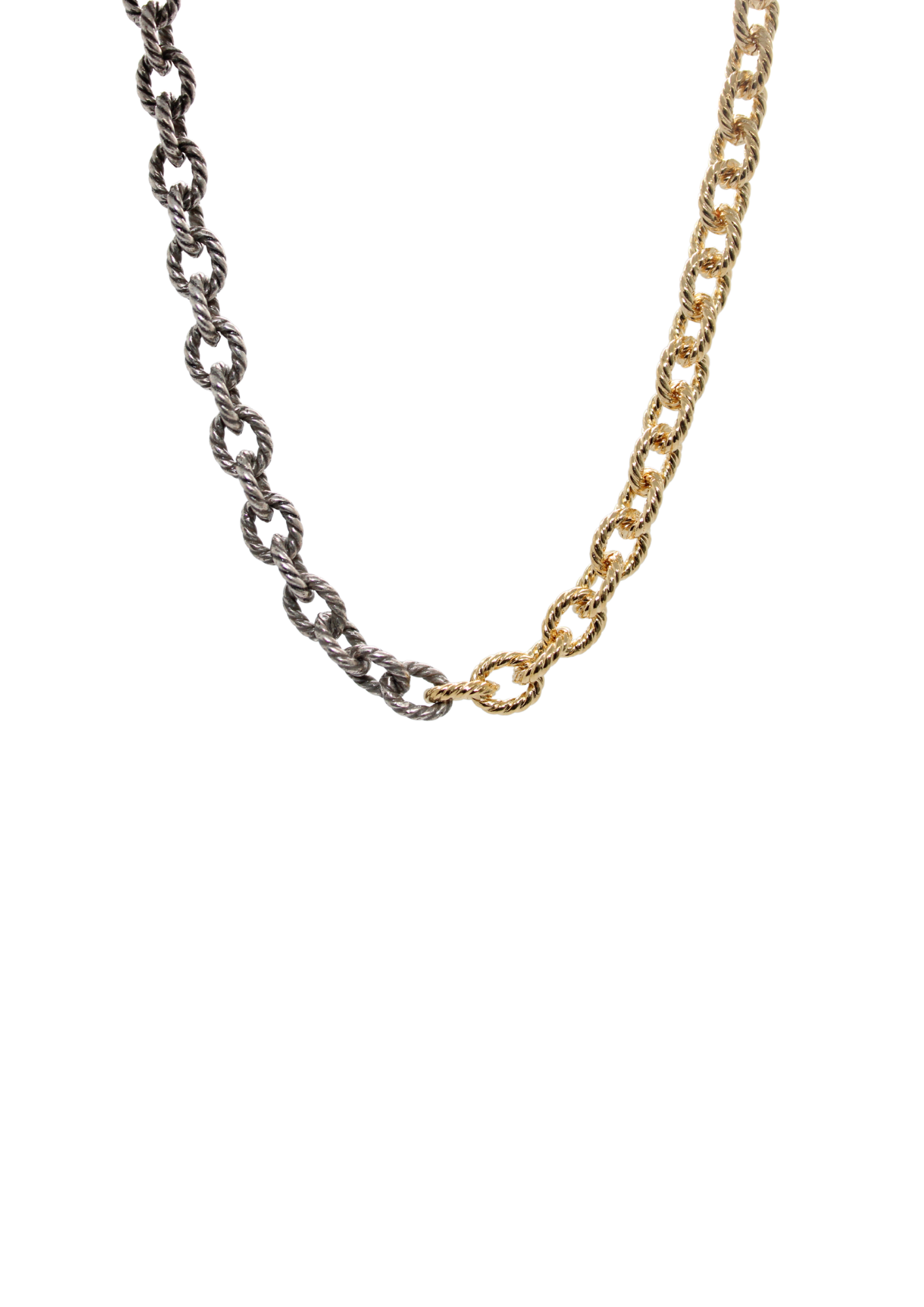 Una combinación poderosa de estilo y robustez. Con su diseño de eslabones gruesos y detalles llamativos, este collar es una declaración audaz de moda y personalidad. Fabricado con materiales de alta calidad y un acabado resistente, es una pieza versátil que añade un toque de elegancia urbana a cualquier conjunto. Lleva contigo el espíritu audaz de nuestro Collar Duo Chunky y haz una declaración de moda que no pase desapercibida.