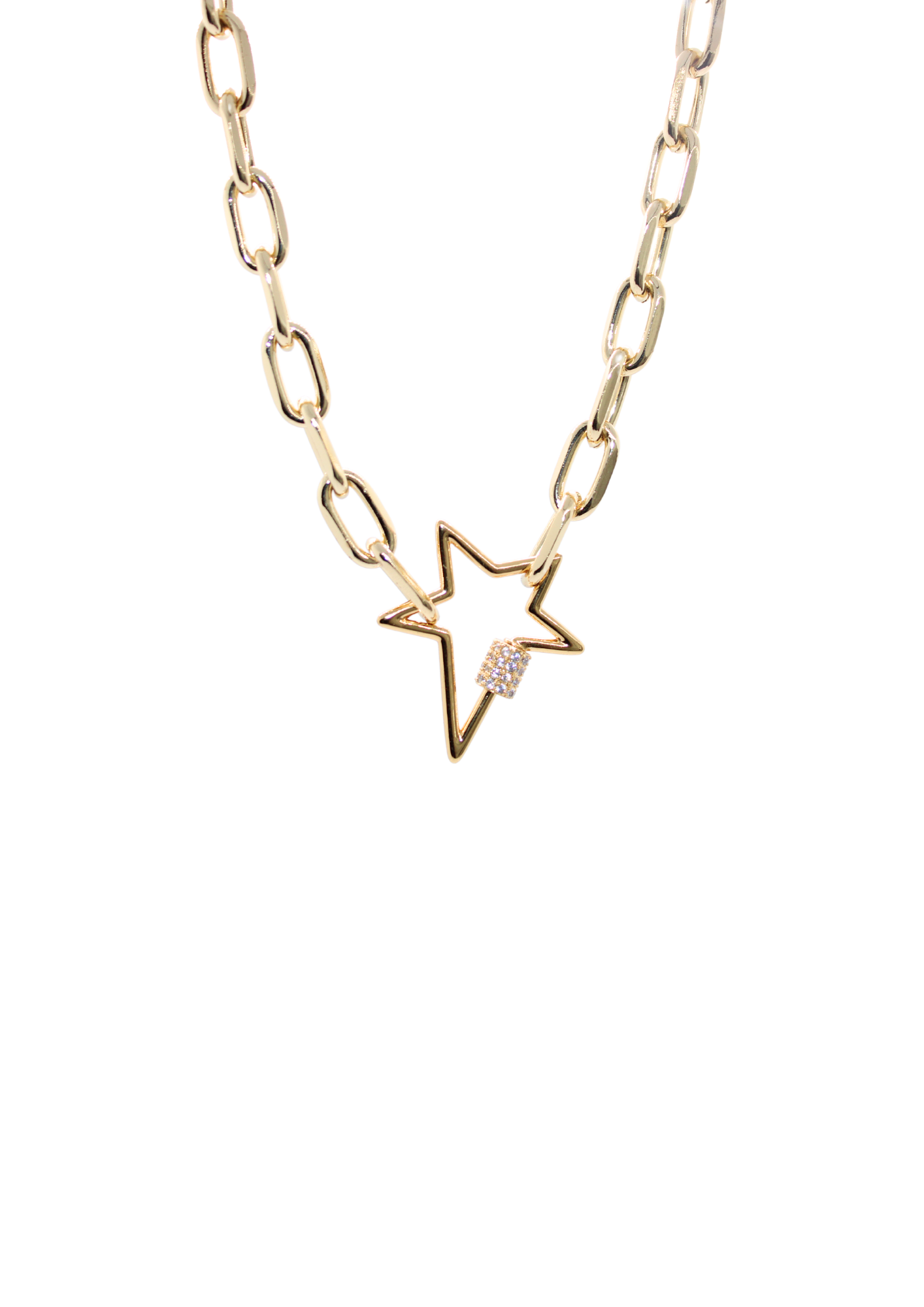 Una fusión de encanto y seguridad. Con un candado adornado con una estrella, este collar representa la protección de tus sueños y aspiraciones. Fabricado con materiales de calidad y un diseño cautivador, es una pieza que agrega un toque de estilo y significado a tu look. Lleva contigo la promesa de protección y brillo con nuestro Collar Candado Estrella.